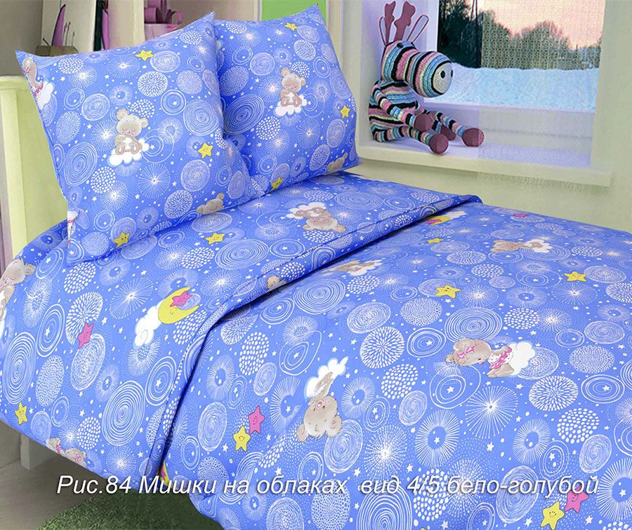 ДКПБ в кроватку бязь 135 гр/м (наволочка 40х60 см) Мишки на облаках арт. 84-4/5 (бело-голубой)
