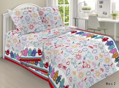 Тип изделия: КПБРазмер: детскийМатериал ткани: бязьСостав: 100% хлопокПлотность: 135 ± 5 г/м2Простыня: 100х150 см - 1 штПростыня на резинке: НетПододеяльник: 112х147 см - 1 штНаволочка: 40х60 см - 1 штПроизводство: г. ИвановоЦвет: разноцветный