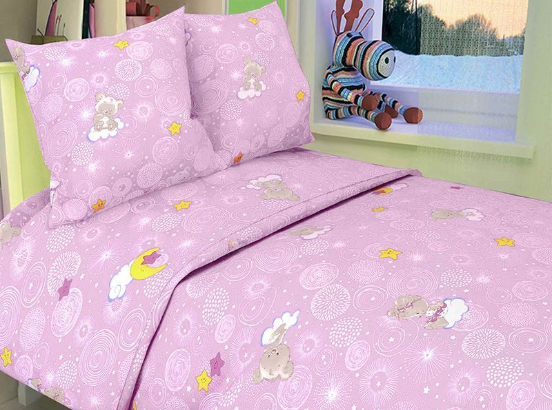 Тип изделия: КПБРазмер: детскийМатериал ткани: бязьСостав: 100% хлопокПлотность: 135 ± 5 г/м2Простыня: 100х150 см - 1 штПростыня на резинке: НетПододеяльник: 112х147 см - 1 штНаволочка: 40х60 см - 1 штПроизводство: г. ИвановоЦвет: розовый