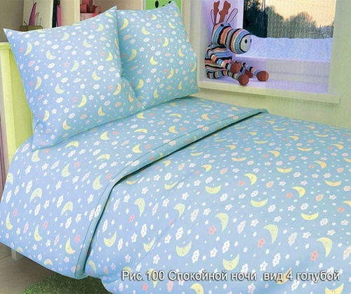 ДКПБ в кроватку бязь 135 гр/м (наволочка 40х60 см) Спокойной ночи арт. 100-4 (голубой)