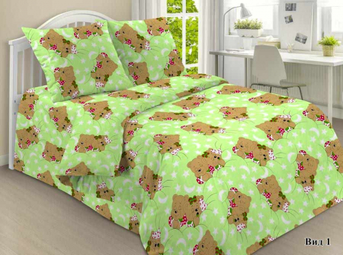 ДКПБ в кроватку бязь 135 гр/м (наволочка 60х60 см) Мишки арт. 1286/1 (зеленый)