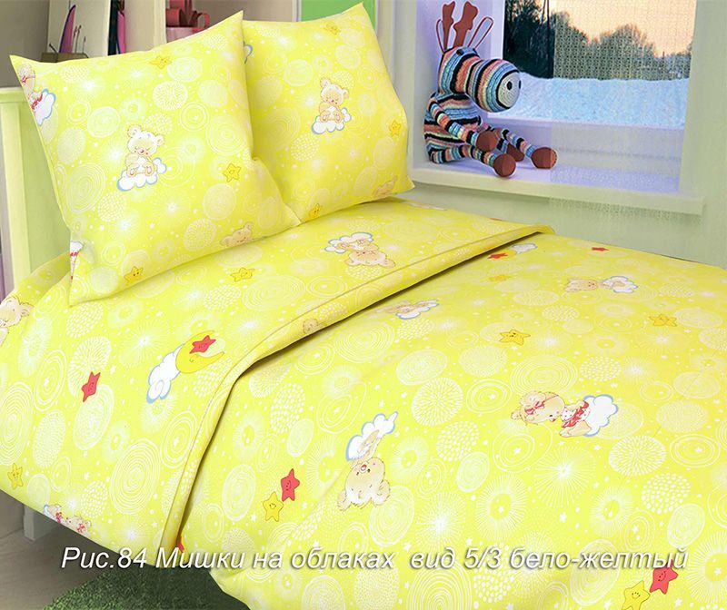 ДКПБ в кроватку бязь 135 гр/м (наволочка 40х60 см) Мишки на облаках арт. 84-5/3 (бело-желтый)