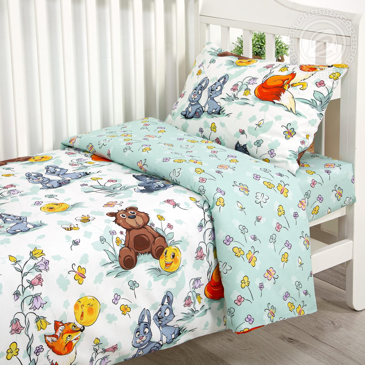 А вы помните волшебную сказку о Колобке, который отправился в невероятное приключение? Теперь сюжет знакомой истории появился на детском комплекте постельного белья из поплина.