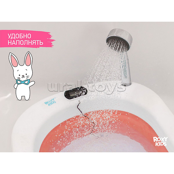 Ванночка складная с термометром и матрасиком "Киты", розовая
