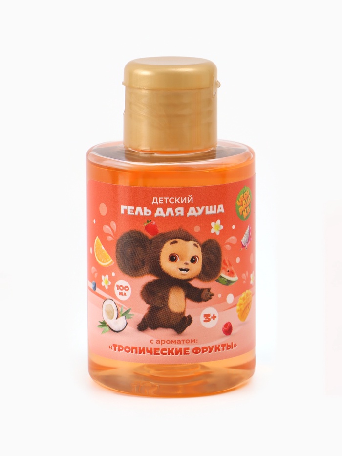Гель для душа детский, аромат тропические фрукты, 100 мл, Чебурашка