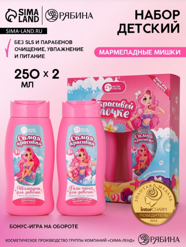Набор детский «Самой красивой русалочке», гель-пена 250 мл, шампунь 250 мл, Чистое счастье