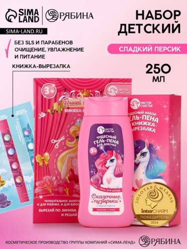 Подарочный набор детский MEGABOT, гель-пена 250 мл, книжка-вырезалка А5, Чистое счастье