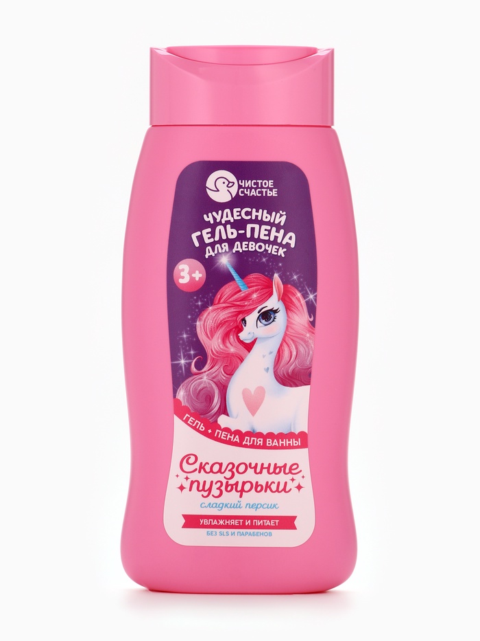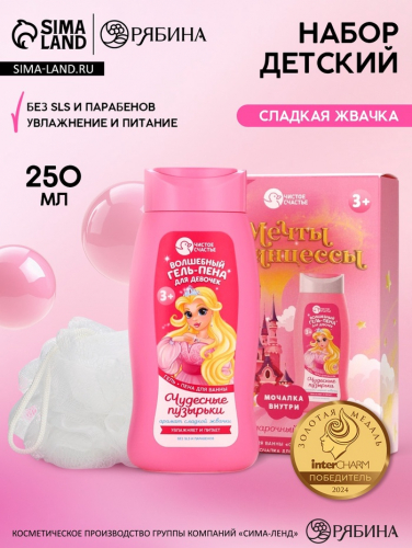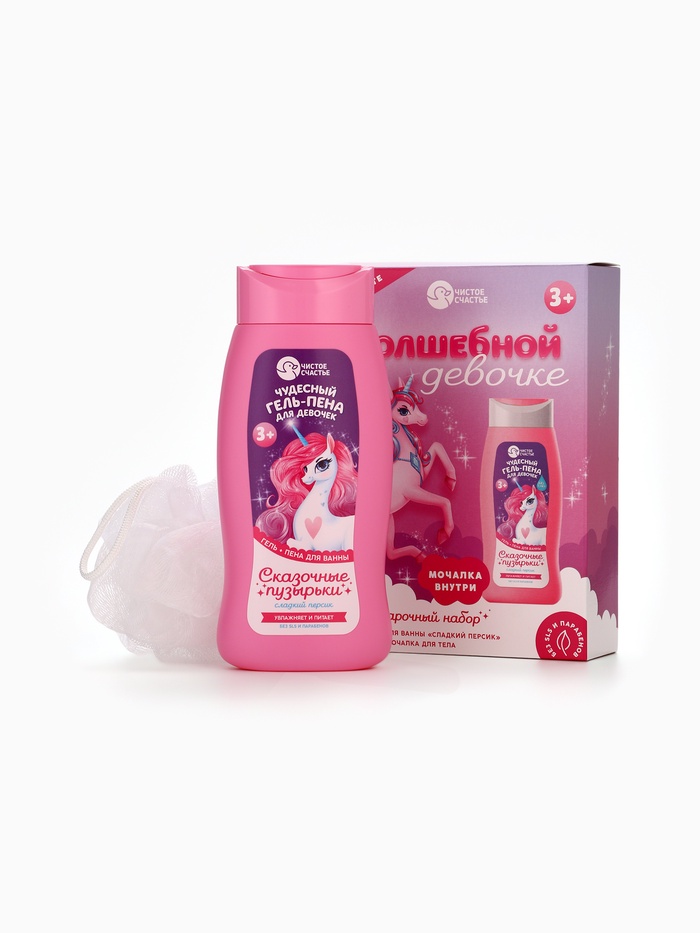 Подарочный набор детский «Волшебной девочке», гель-пена 250 мл, мочалка, Чистое счастье