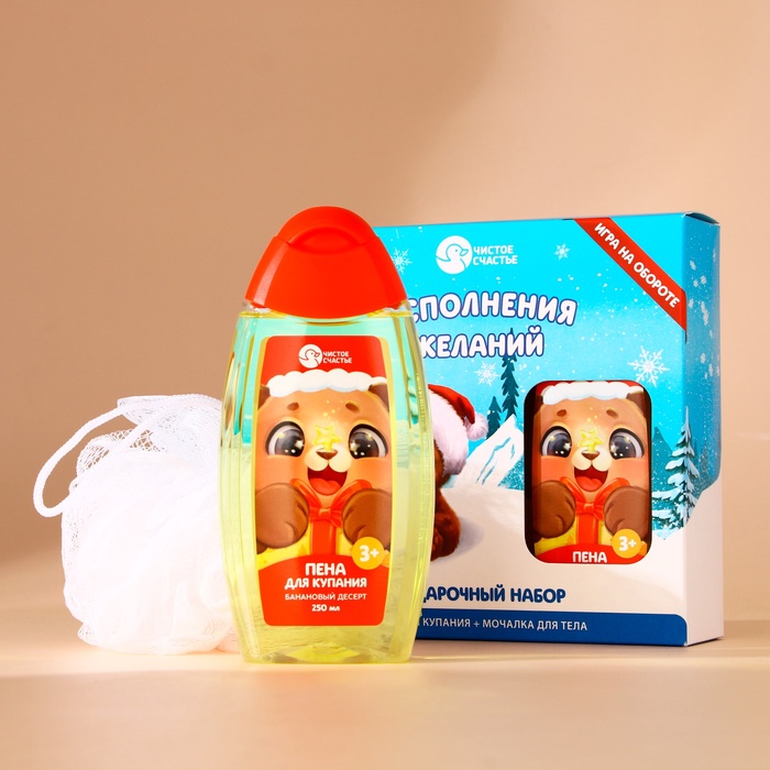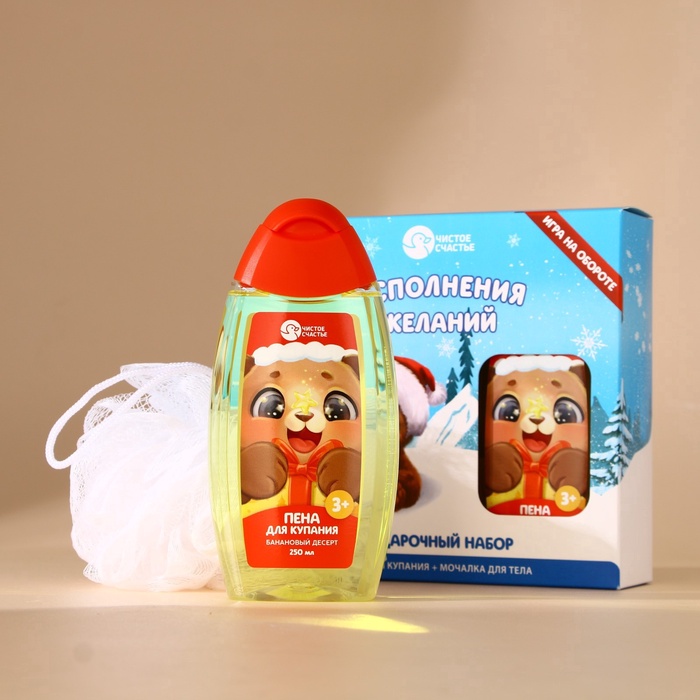 Подарочный набор новогодний детский «Исполнения желаний»: пена для ванны 250 мл и мочалка для тела, Чистое счастье