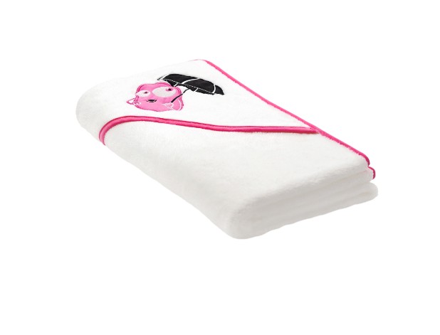 Детское полотенце с уголком Green Fiber & Totty, белое с розовым кантом