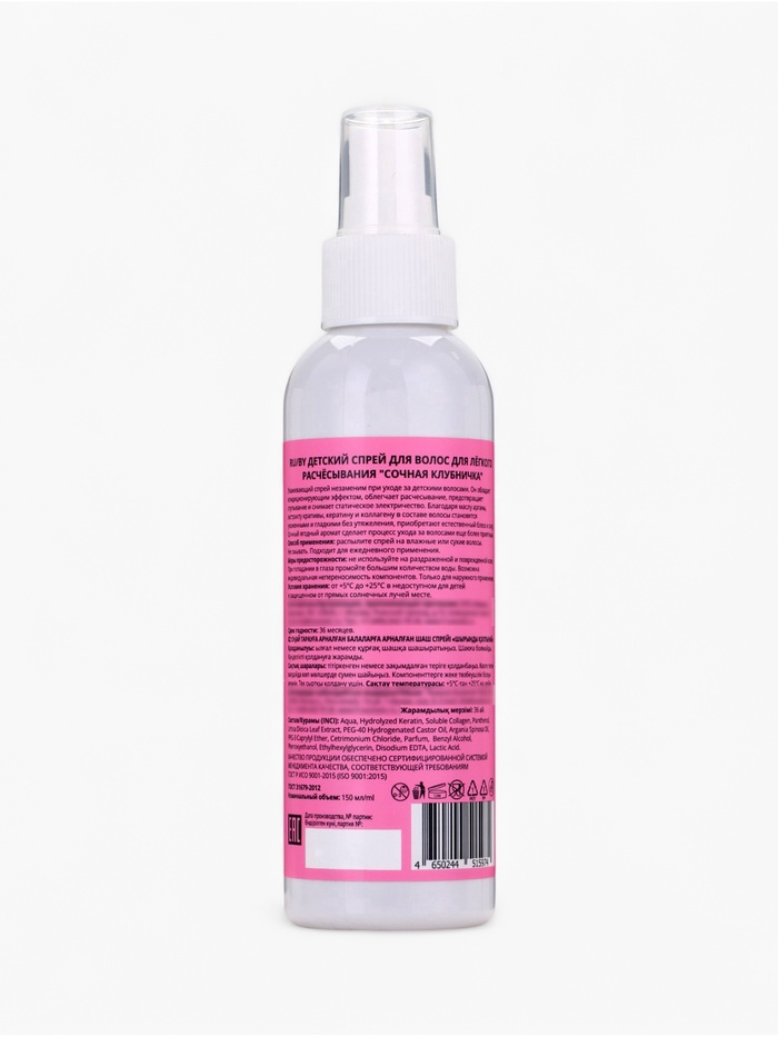 Детский спрей для волос «Сочная клубничка» обеспечивает лёгкое расчесывание и бережный уход за волосами ребёнка. Средство предотвращает спутывание, снимает статическое электричество и делает волосы ухоженными, гладкими и блестящими без утяжеления. Сочный ягодный аромат превращает процесс ухода за волосами в приятное и весёлое занятие.