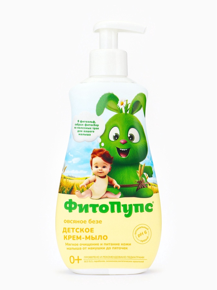 Детское крем-мыло Фитопупс с ароматом свежих пшеничных полей бережно очищает кожу младенцев с головы до пяточек.