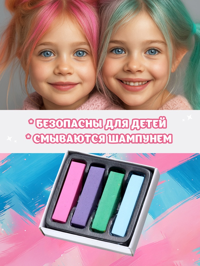 Мелки для волос — то, что нужно юной девчонке или подростку, чтобы подчеркнуть свою индивидуальность. Разноцветные прядки ярких или пастельных оттенков помогут не только ненадолго сменить имидж, но и поднять настроение. С помощью этого средства, юная принцесса, будет блистать своей красотой, радоваться и любоваться собой перед зеркалом.