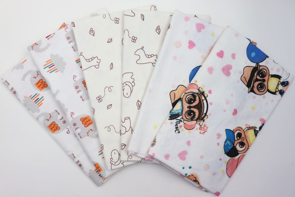 Материал ткани: фланель; Состав: 100% хлопок; Плотность: 175 ± 5 г/м2; Производство: г. Иваново; Тип изделия: пеленки; Цвет: в ассортименте; Размер: 75х120 см