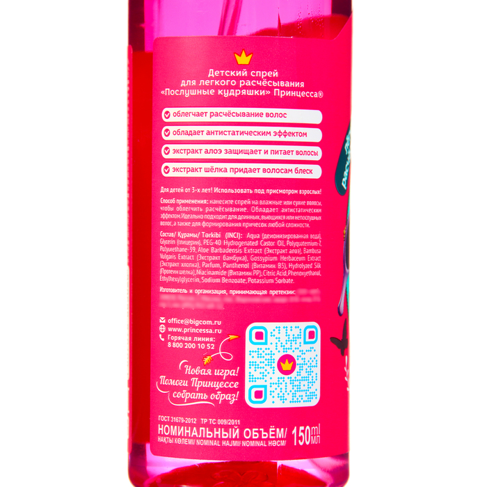 Спрей для лёгкого расчёсывания «Принцесса», послушные кудряшки, 150 мл