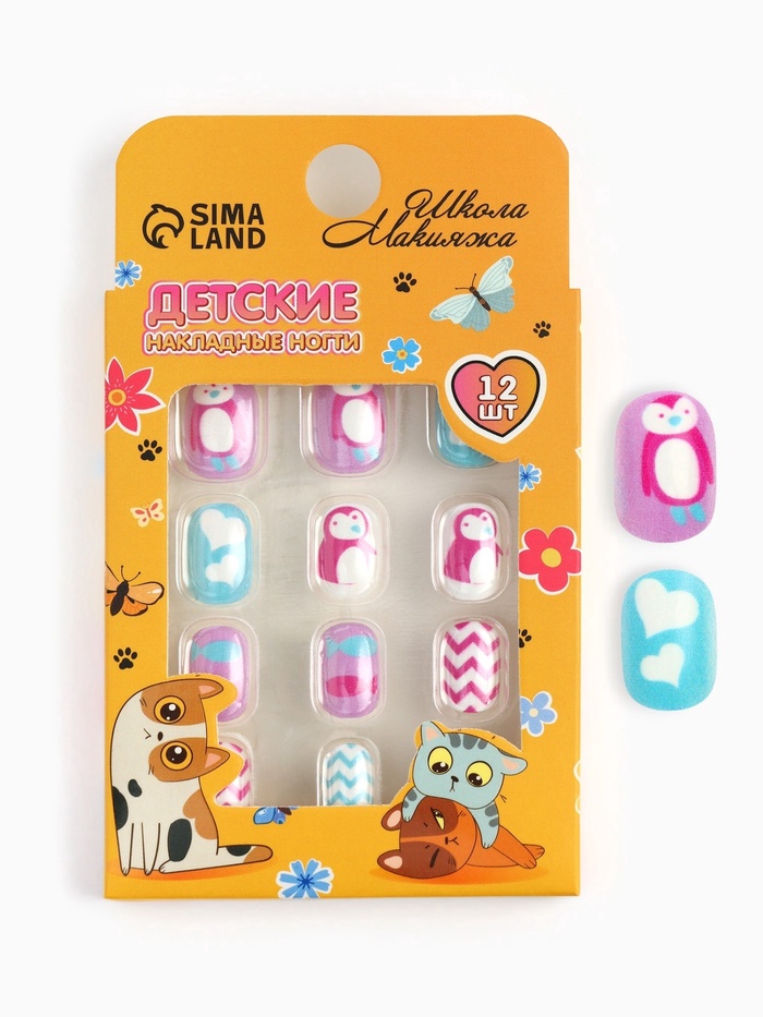 Детские накладные ногти «Пингвиненок», 12 шт.