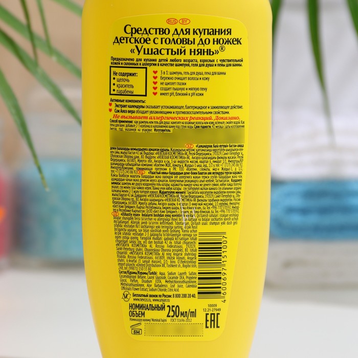 Средство для купания «Ушастый нянь», с головы до ножек, с календулой и алоэ, 250 мл