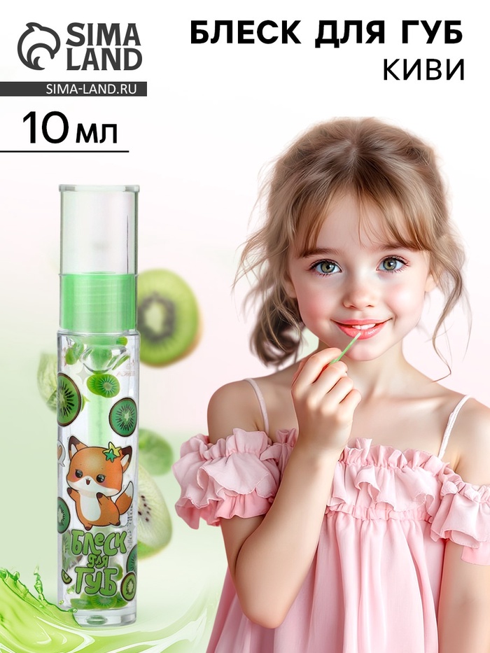 Блеск для губ "Спелый киви" для девочек — прозрачный, с освежающим ароматом киви. Объем 10 г, безопасная формула создает красивый блеск и ухаживает за губами. Идеально подходит для повседневного использования, добавляет яркости и свежести образу маленьких модниц.
