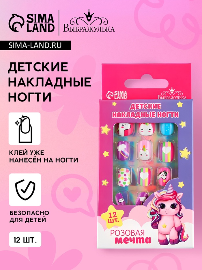 Детские накладные ногти «Розовая мечта», 12 шт.