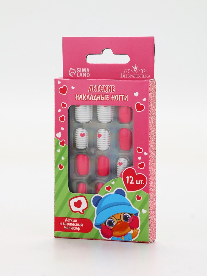 Детские накладные ногти «Сердечки», 12 шт.