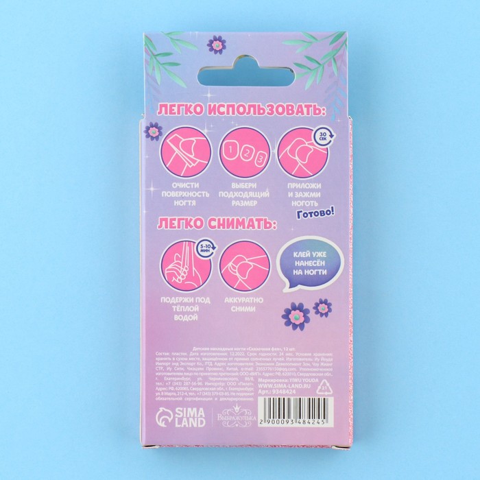 Детские накладные ногти «Сказочная фея», 12 шт.