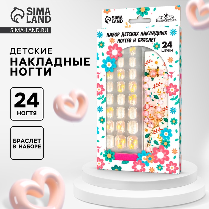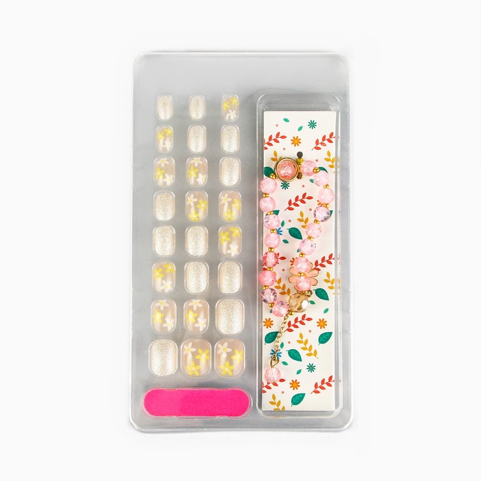 Детские накладные ногти «Весенний букет», 24 шт., набор с браслетом