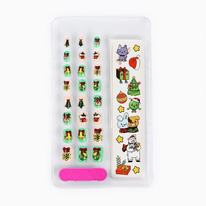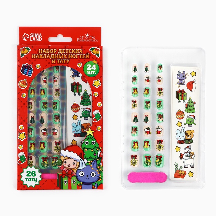 Накладные ногти детские с татуировками на новый год «Новогоднее настроение»
