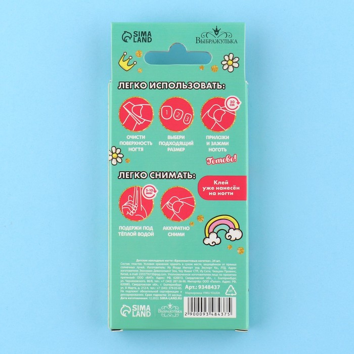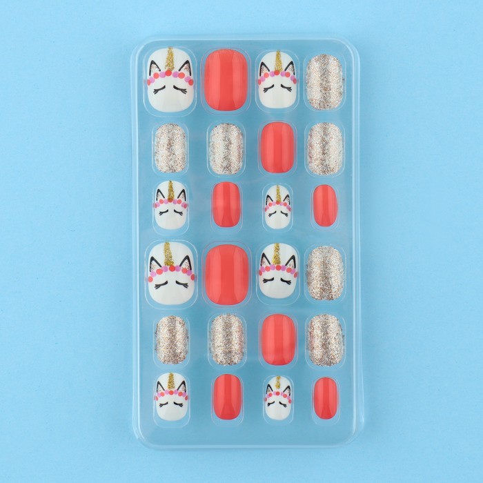 Детские накладные ногти придуманы для самых ярких и стильных девчонок! Клей уже нанесён на ногти.