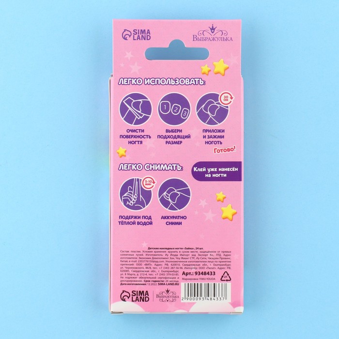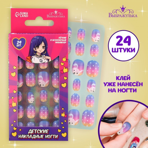 УЦЕНКА Детские накладные ногти «Зайка», 24 шт.
