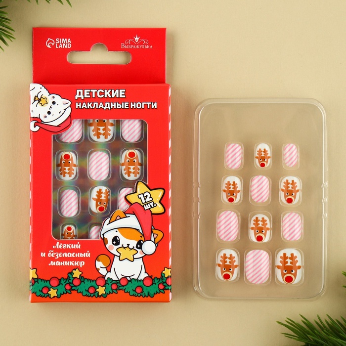 УЦЕНКА Детские накладные ногти "Зимняя история" , 12 шт
