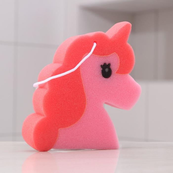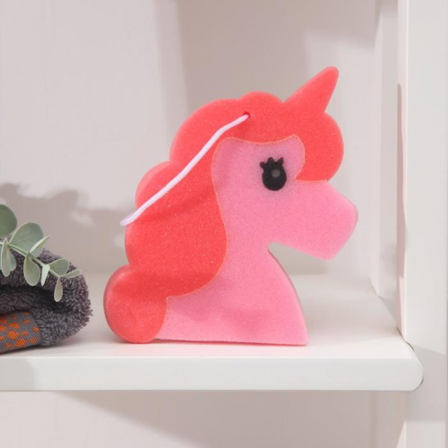 Губка для тела Доляна «Единорожка», детская, 17×14 см, розовая