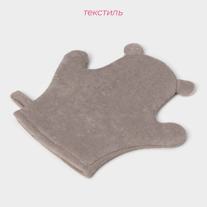 Мочалка варежка детская Доляна «Бегемотик», для купания, 21 см