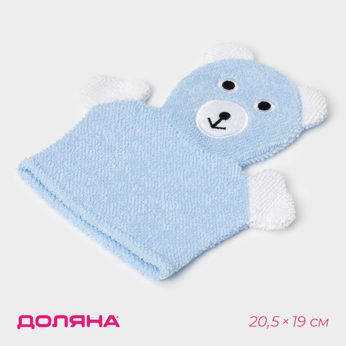 Мочалка варежка детская Доляна «Мишка», для купания, 22 см