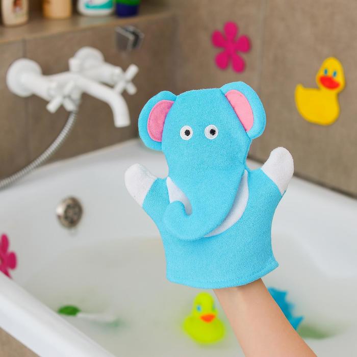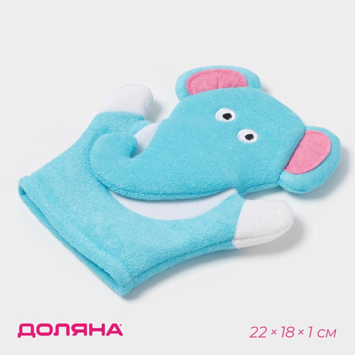 Мочалка варежка детская Доляна «Слоник», для купания, 22 см