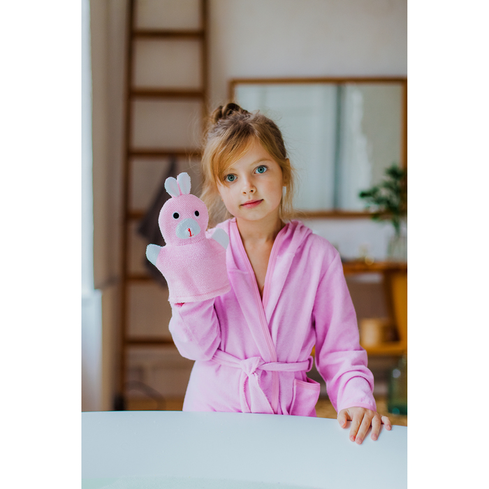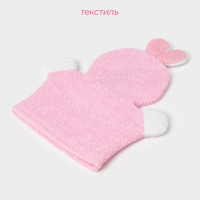 Мочалка варежка детская Доляна «Зайка», для купания, 23 см