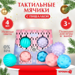 Мячики с рельефной массажной поверхностью способствуют развитию мелкой моторики и тактильных ощущений. Давление на фактурную поверхность мячиков стимулирует и благоприятно воздействует на нервные окончания, ответственные за большинство процессов в организме. Шарики имеют яркие цвета, которые способствуют развитию зрения, а пищалка внутри развивает слуховое восприятие.