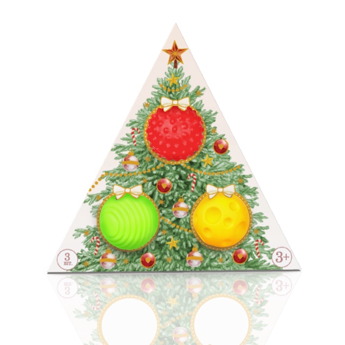 Подарочный новогодний набор развивающих тактильных мячиков M&B «Рождественская ёлочка», 3 шт.