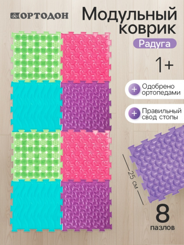 Ортопедическое напольное покрытие состоит из отдельных модулей, которые соединяются между собой по принципу пазла. По массажному коврику можно ходить или выполнять упражнения, стоя на нём. Во время занятий стимулируются рецепторы на стопе и формируются её физиологические своды. Изделие применяется для профилактики плоскостопия у детей, массажа стоп и снятия усталости ног.