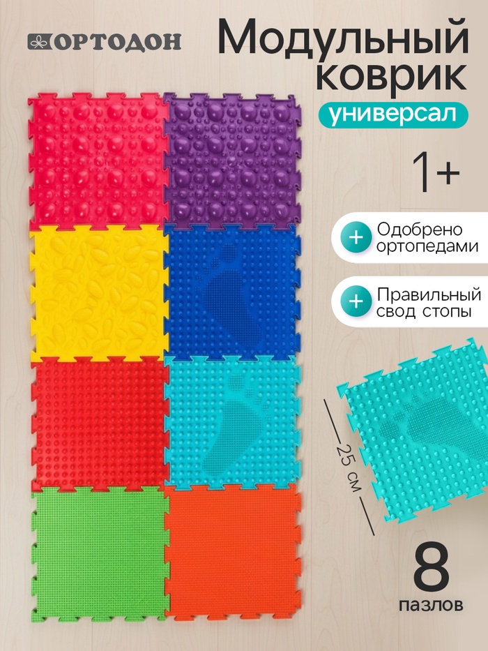 Модульный массажный коврик, набор №1 «Универсал», 8 шт., Ортодон