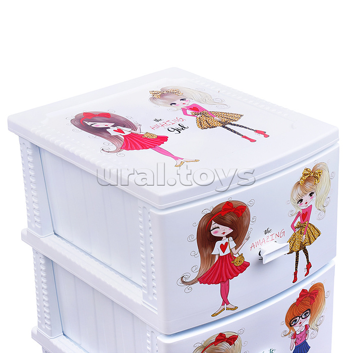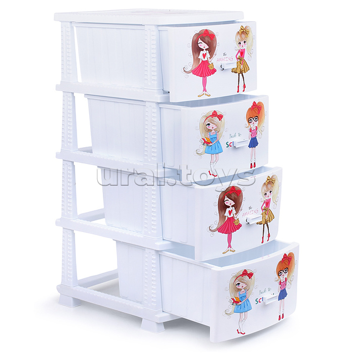 Комод "Декор" "Девочки" (Моно) 4 секции, белый