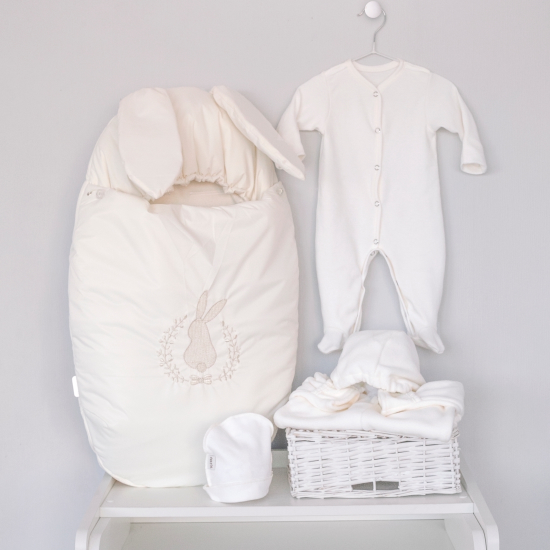 • АртикулКомплект на выписку 5 предметов "Зайкин", демисезонный, молочный