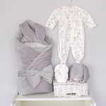 • АртикулКомплект на выписку 5 предметов "Бант", демисезонный, бежевый