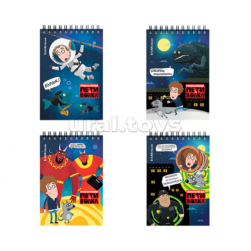 Блокнот 60л. клетка, "Приключения Пети и Волка" на спирали, А6
