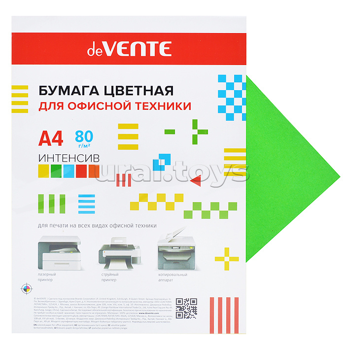 Бумага цветная для офисной техники A4 20 л, 80 г/м², интенсив зеленый, в пластиковом пакет