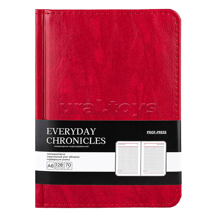 Ежедневник А6, 128л. недатир. "EVERYDAY CHRONICLES - RED" кожзам (красный)
