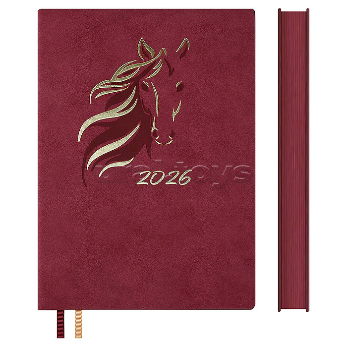 Ежедневник датированный 2026 Escalada, А5, 176 л., Замша бордовый
