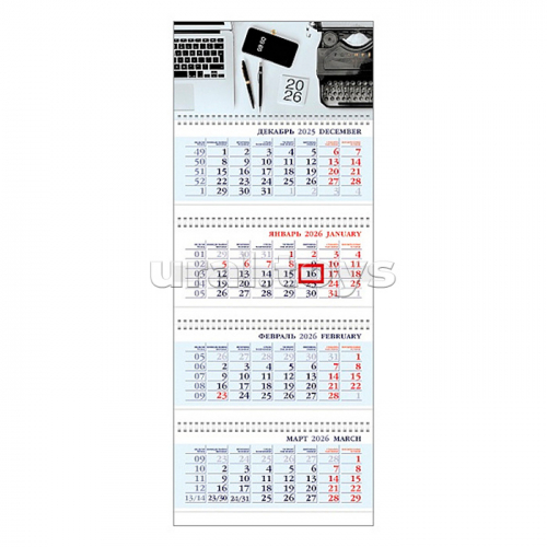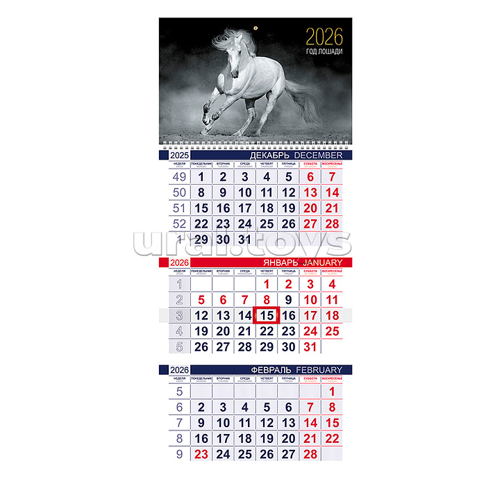 Календарь квартальный 3-х блоч. на 1 гребне Эконом "Год Лошади" 2026г