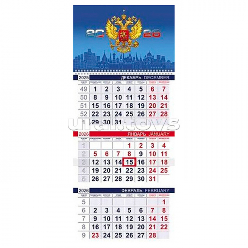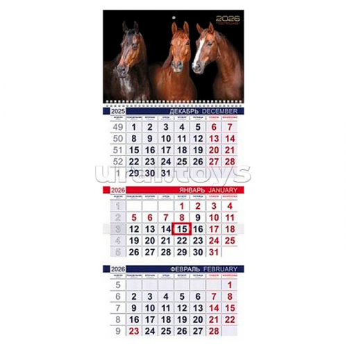 Календарь квартальный 3-х блоч. на 1 гребне Эконом "Год Лошади" 2026г