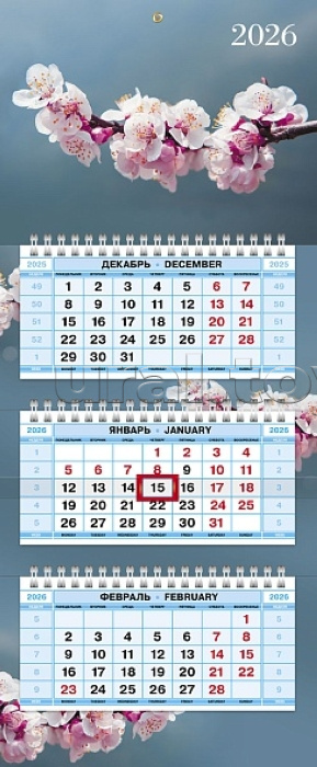 Календарь квартальный 3-х блоч. на 3-х гребнях Мини "Цветущая сакура" 2026г