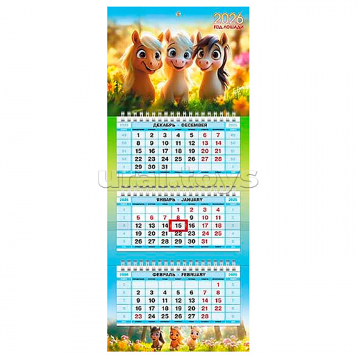 Календарь квартальный 3-х блоч. на 3-х гребнях Мини "Год Лошади" 2026г